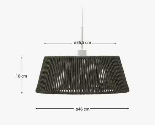 Aldet to abażur do lampy sufitowej, który łączy pleciony wzór liny z funkcjonalnym designem. Wykonany w kolorze szarym, nadaje przytulny i naturalny charakter każdej przestrzeni zewnętrznej, tworząc wyjątkową atmosferę na tarasie, balkonie czy w ogrodzie.