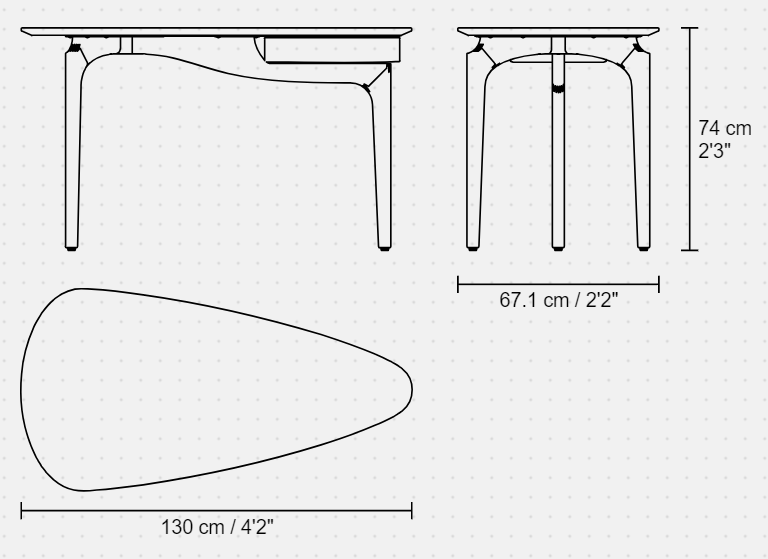Organiczny kształt biurka nadaje projektowi lekkości, co sprawia, że Duende staje się designerskim elementem, pasującym z wdziękiem do każdego pomieszczenia i ustawienia. Miękki trójkątny kształt blatu nadaje stołowi wyrafinowaną estetykę, jednocześnie zajmując minimalną przestrzeń, a zapewniając jednocześnie odpowiednią przestrzeń roboczą. Możesz umieścić je w rogu sypialni lub salonu jako subtelne, ale idealne miejsce do koncentracji podczas pracy w domu, lub umieścić je centralnie w biurze, pozwalając magicznym krzywiznom ożywić przestrzeń.