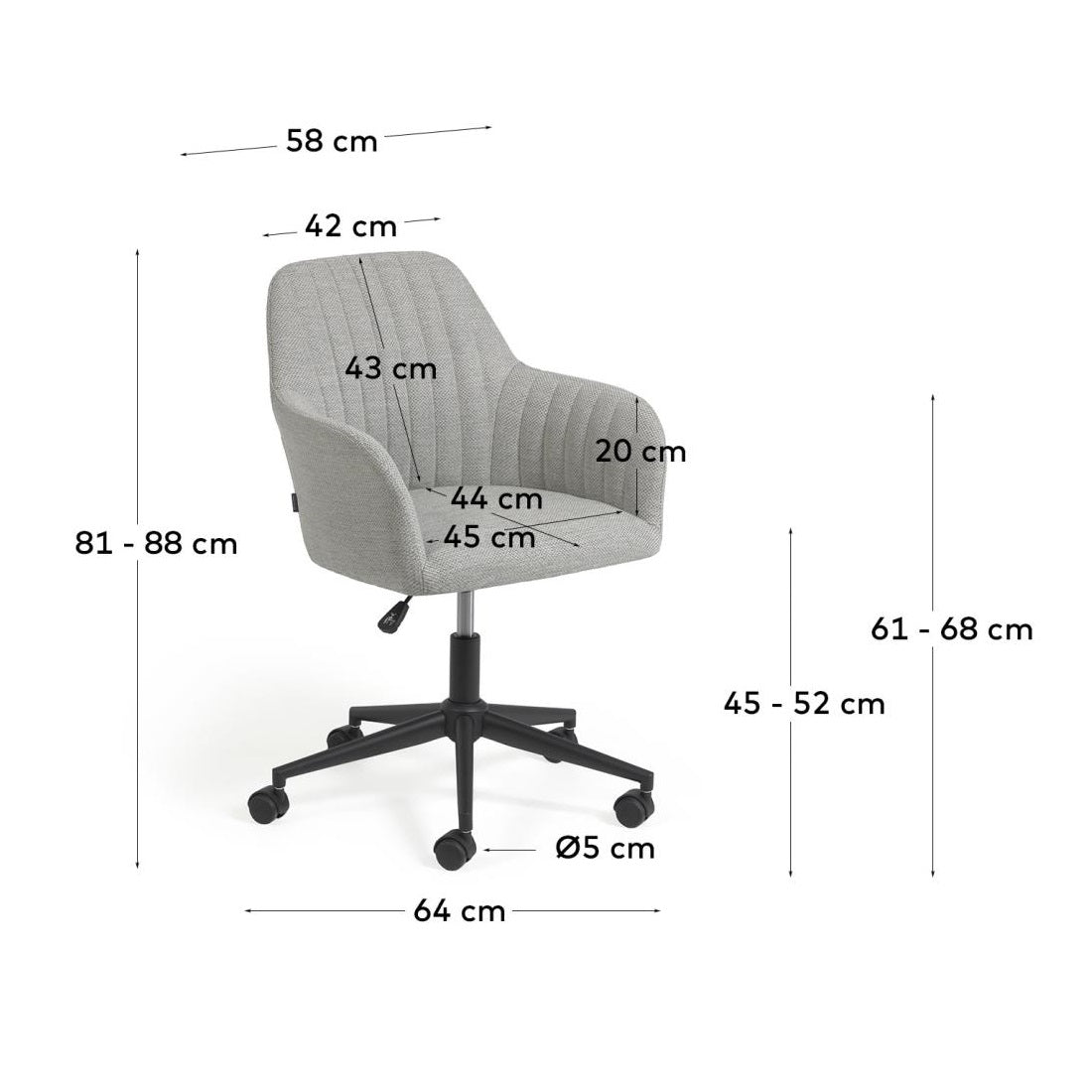Krzesło do biura Madina to nie tylko komfort, ale także wszechstronność - jego obrotowa konstrukcja z możliwością regulacji wysokości sprawia, że idealnie dostosowuje się do Twoich indywidualnych potrzeb. Konstrukcja stalowa w matowej czerni jest nie tylko trwała, ale również bezpieczna dla parkietu, chroniąc podłogę przed zarysowaniami.