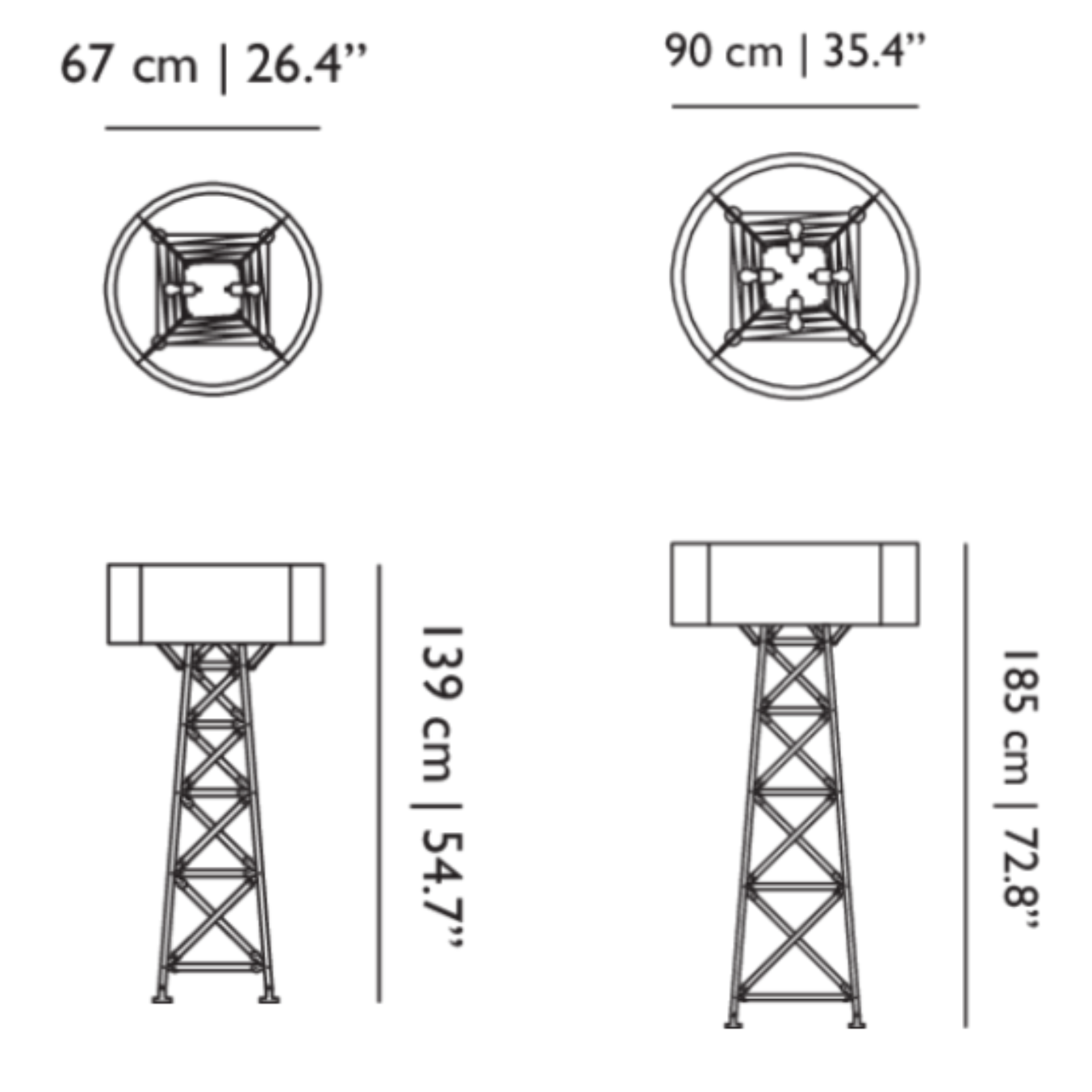 Lampa podłogowa Construction dostępna jest w dwóch kolorach i dwóch modelach. Podobnie jak zabytkowe zabawki budowlane i rusztowania, lampa budowlana jest składana ręcznie, co nadaje jej niepowtarzalny charakter i wyjątkową osobowość.