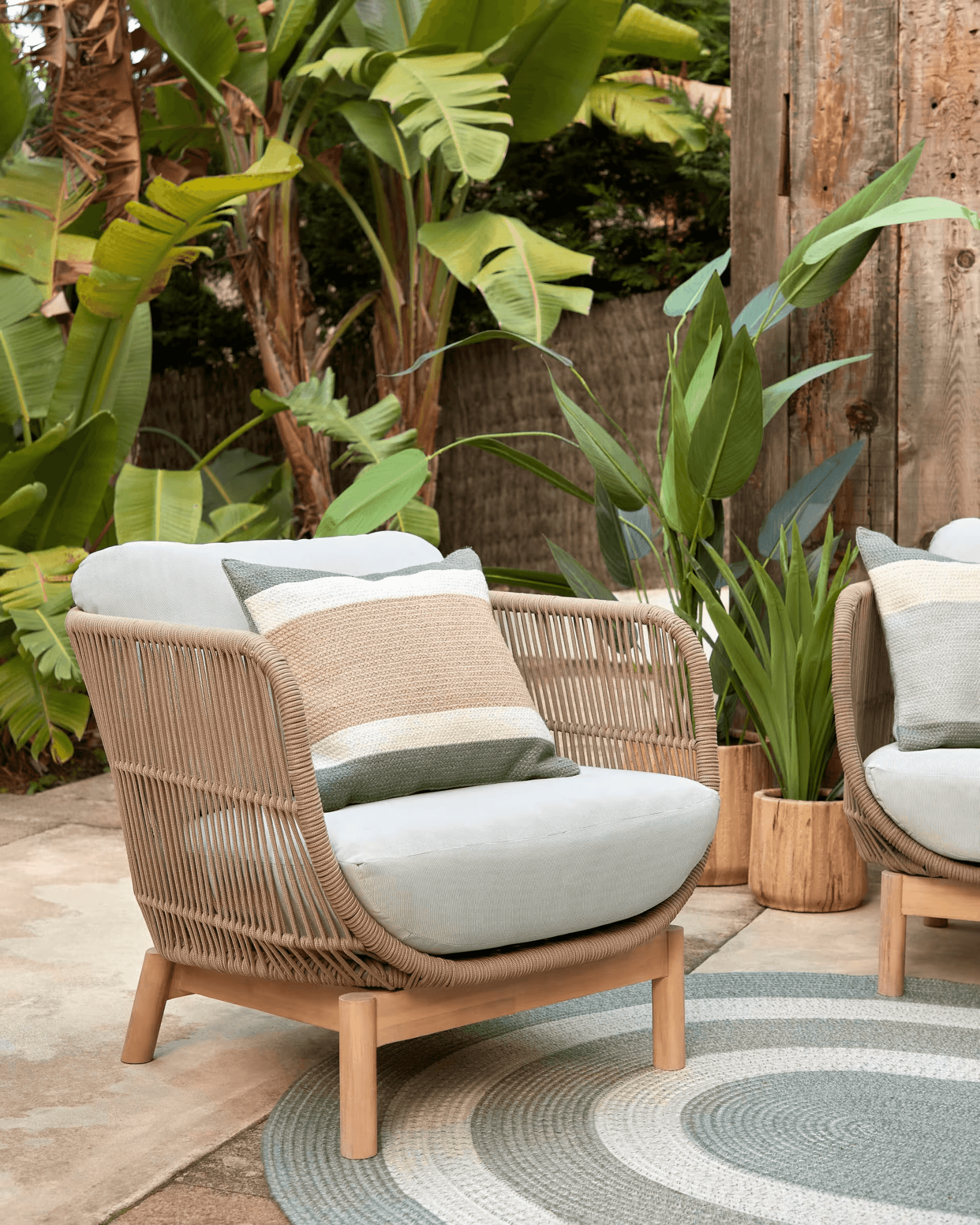 Ten designerski fotel to połączenie solidności litego drewna akacjowego z ręcznie tkaną liną poliestrową, tworząc unikalny efekt, który rozświetli zarówno Twoją werandę, jak i salon. Odporność na promieniowanie UV sprawia, że fotel Catalina to nie tylko mebel sezonowy, ale także element wyposażenia, który zachowuje swój wyjątkowy wygląd przez wiele lat.