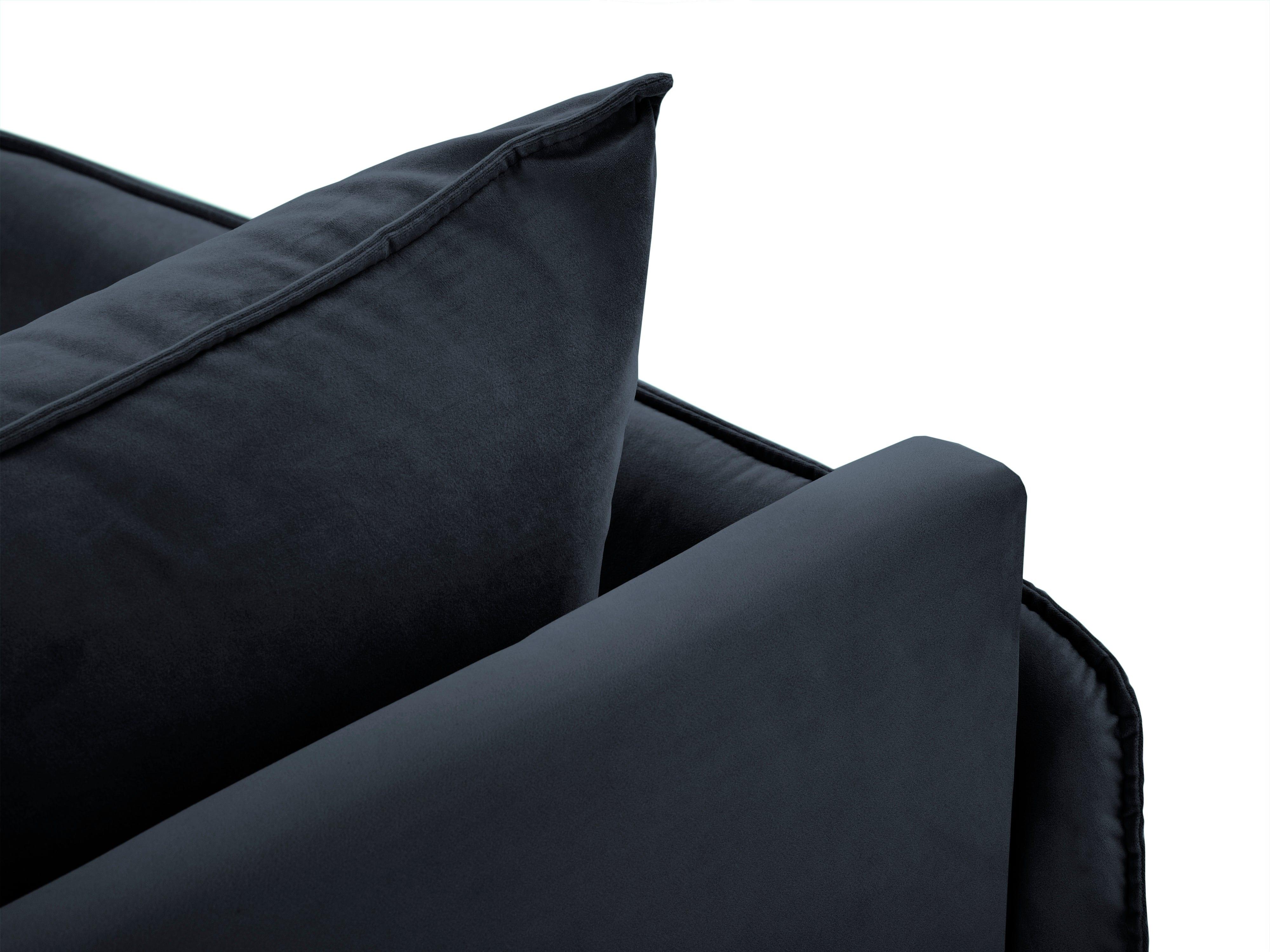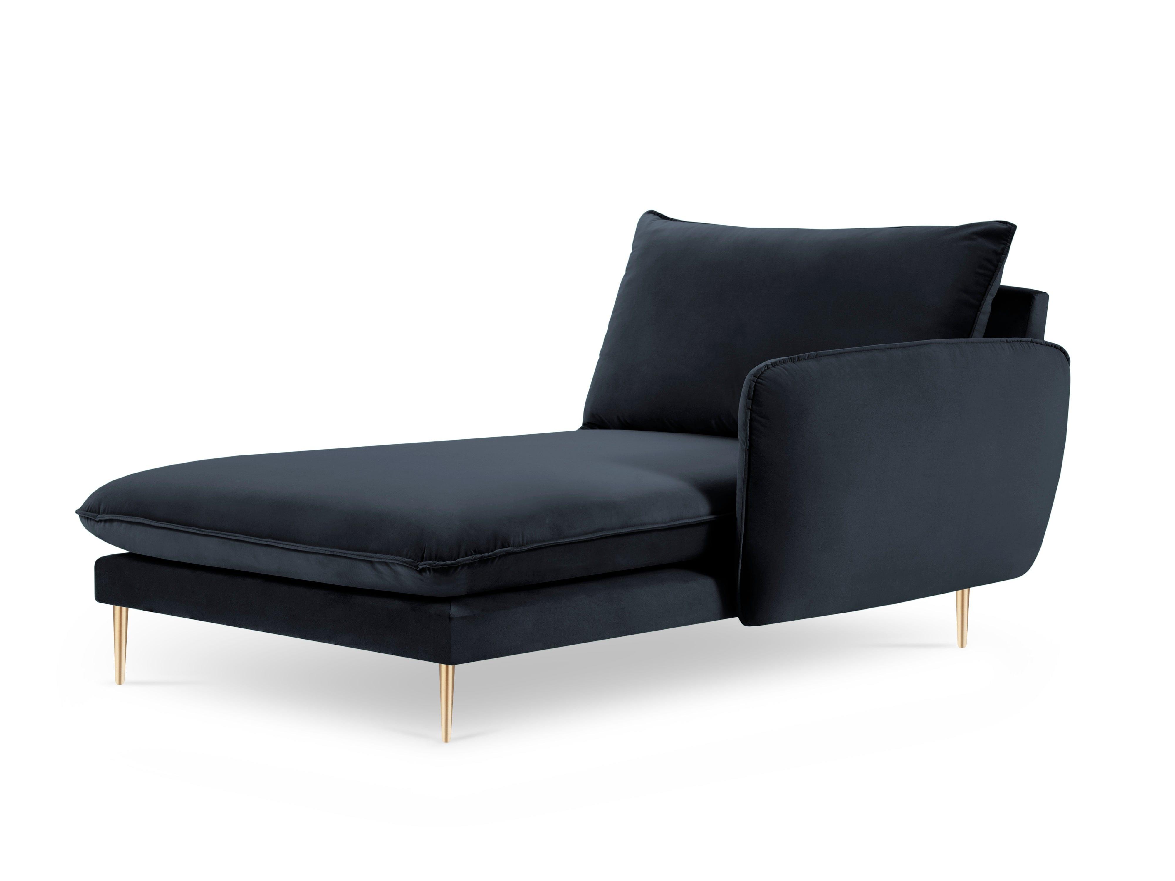 Szezlong aksamitny prawostronny VIENNA granatowy ze złotą podstawą
