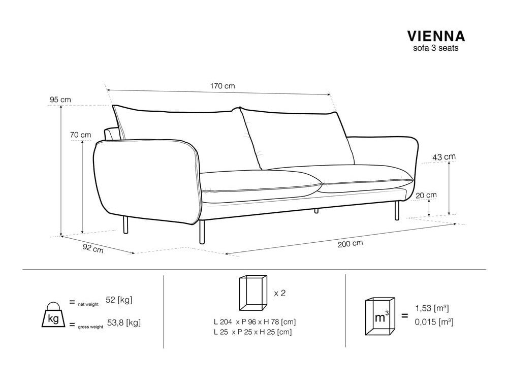 Sofę Vienna wyróżniają piękne proporcje i harmonijne kształty. Sofa do salonu jest nie tylko wygodna, ale też wprowadzi do wnętrza nutę paryskiego szyku i elegancji. Subtelny kształt i miękkie siedzisko zapewnią niezwykły komfort użytkowania. Metalowe nogi nadają całej formie lekkości.