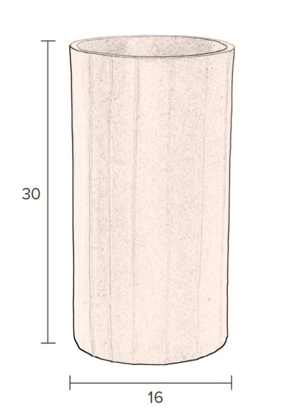 Wazon Rander jest dostępny w różnych kolorach, wykonany ręcznie z aluminium i wykończony matową powłoką, która imituje terakotę. Dzięki swojej wodoodporności jest doskonałym wyborem jako wazon na kwiaty, wnosząc do pomieszczenia ciepłą i przytulną atmosferę.