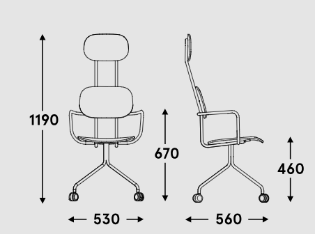 Krzesło biurowe z zagłówkiem New School tapicerowane, zaprojektowane przez Studio Form Us With Love, dostępne jest w wariantach z i bez zagłówka. Nowoczesna forma z podwójnym oparciem natychmiast przyciąga uwagę, a tapicerowane siedzisko zapewnia komfort użytkowania, idealne do biur, placówek edukacyjnych oraz przestrzeni konferencyjnych. Dzięki podłokietnikom i kółkom, użytkownik może cieszyć się pełną swobodą ruchu i wygodną pozycją siedzącą. Tapicerka w połączeniu z metalowym stelażem tworzy nowoczesny, elegancki wygląd, który można dostosować do dowolnej aranżacji wnętrza.