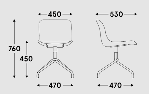 Podstawa: 4-ro ramienna metalowa, malowana proszkowo, siedzisko obrotowe - 360°, nogi z rury Ø22 mm, stopki tworzywowe;