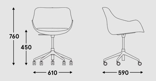 Siedzisko tworzywowe + poduszka - pianka odlewana, gęstość 50kg/m³, tapicerowana;