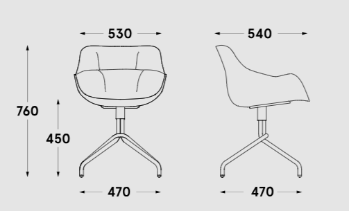 Podstawa 4-ro ramienna metalowa, malowana proszkowo, siedzisko obrotowe - 360°, nogi z rury Ø22 mm, kółka do powierzchni miękkich i twardych