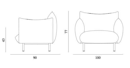 Ark sprawia wrażenie,że fotel jest zbudowany niemal wyłącznie z poduszek, co podkreśla jego miękki i przyjazny charakter. Konstrukcja wydaje się być podzielona na mniejsze, poduszkowe segmenty. Siedzisko, oparcie i podłokietniki wyglądają jak oddzielne, starannie ułożone poduszki. Ta unikalna kompozycja wzmacnia przytulny wygląd fotela, a prostota projektu dodaje jej elegancji i wyrafinowania.