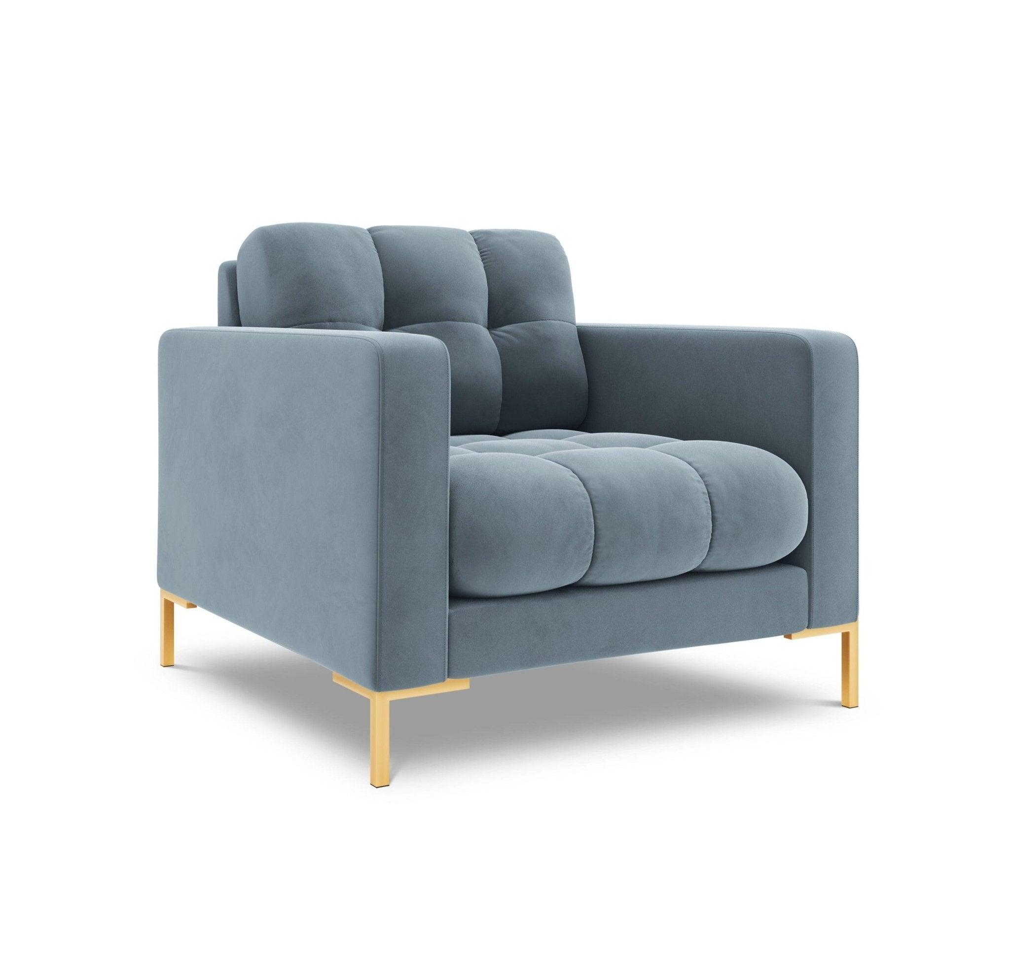 Fotel aksamitny BALI jasnoniebieski ze złotą podstawą