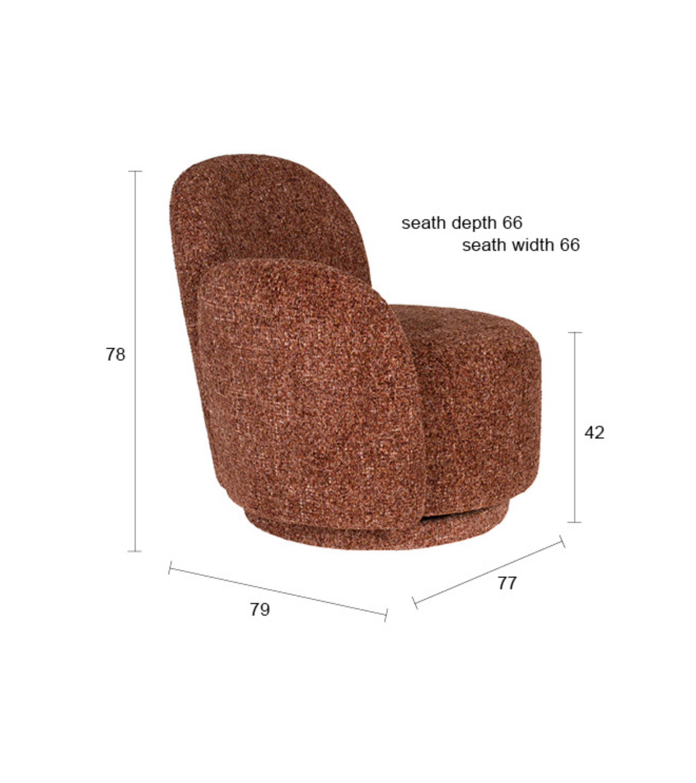 Fotel Rose to designerski akcent, który od razu przyciąga wzrok. Inspirowany kształtem kwiatu, zachwyca miękkimi, zaokrąglonymi liniami i obiciem z grubo tkanego materiału typu melanż. Tapicerka w połączeniu z organiczną formą wprowadza przytulną, ciepłą atmosferę do każdego wnętrza – od sypialni po nowoczesny salon.