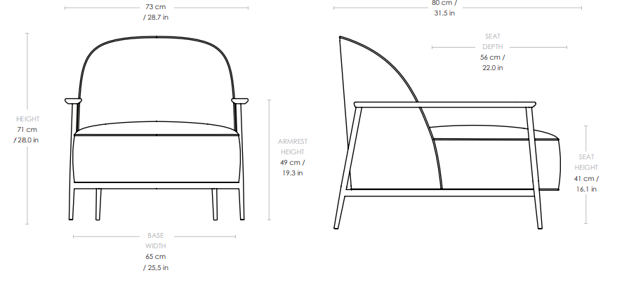 Wersja z podłokietnikami została wzbogacona o drewniane elementy z orzecha amerykańskiego, które subtelnie nawiązują do miękkich linii fotela, dodając wizualnej lekkości oraz umożliwiając różne pozycje siedzenia.
