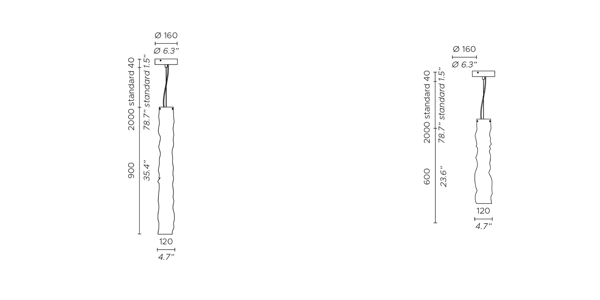 Lampa wisząca Baggy Vertical posiada podwójnie satynowy dyfuzor z poliwęglanu o nieregularnym wyglądzie zmiętej papierowej tuby, a podstawa jest w szarym wykończeniu. To, co czyni Baggy wyjątkowym, to organiczny kształt, zawierający niestandardową diodę LED, która emituje światło w magiczny i nieoczekiwany sposób.