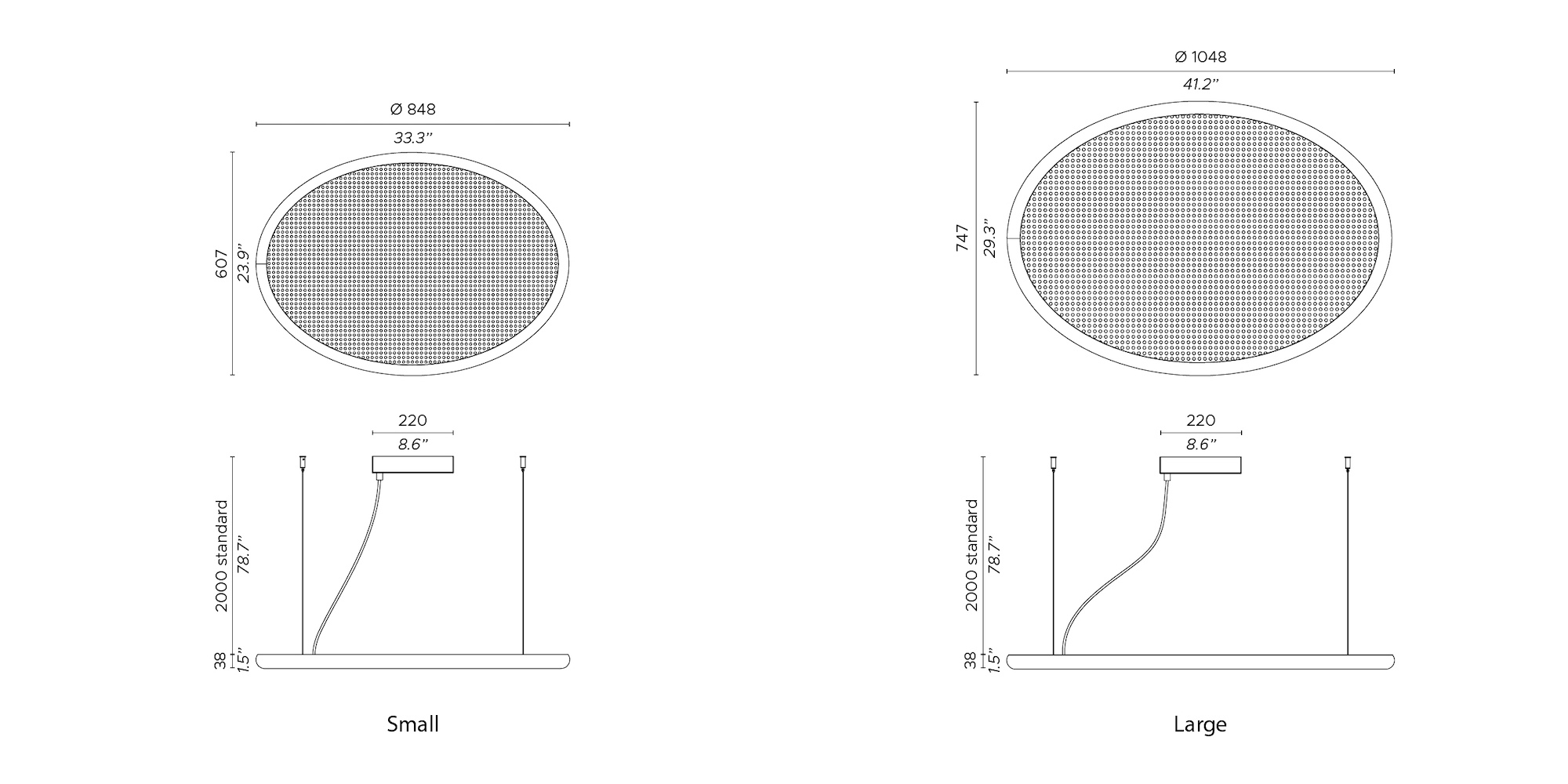 Czysta, prosta linia i czarne drewno tworzą elegancki wyraz wpisany w ducha nowoczesnego wystroju. Światło wydobywa się równomiernie i miękko. Idea lekkości wyrażana jest za pomocą materiału, który deklaruje swoją współczesność i elegancją pasuje do naszych wnętrz. Panel LED może być pokryta białą bawełną, wiedeńską słomą lub tkaniną z nadrukiem marmurkowym, osadzona w czarnym lakierowanym owalu.