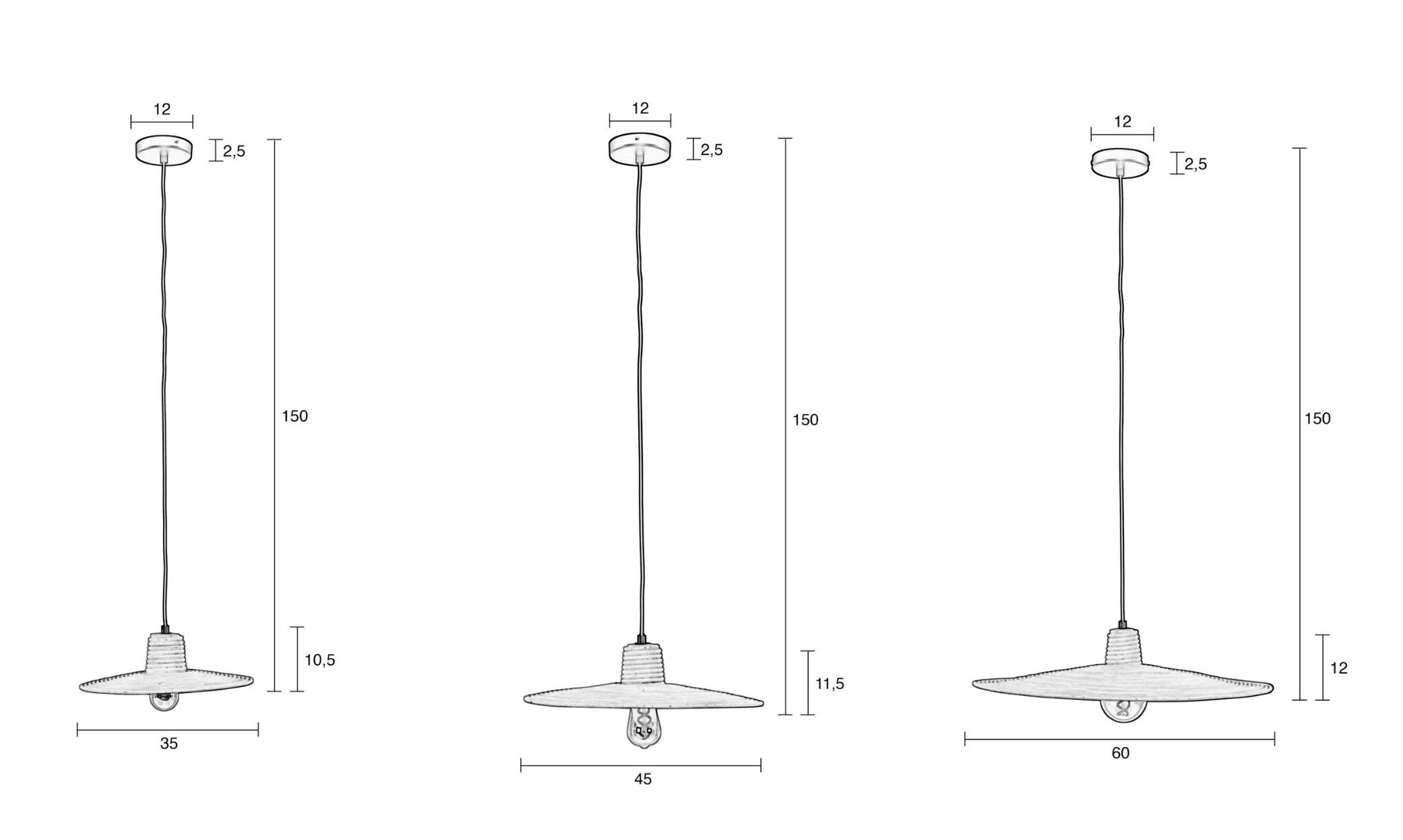Średnica: 35 / 45 / 60 cm