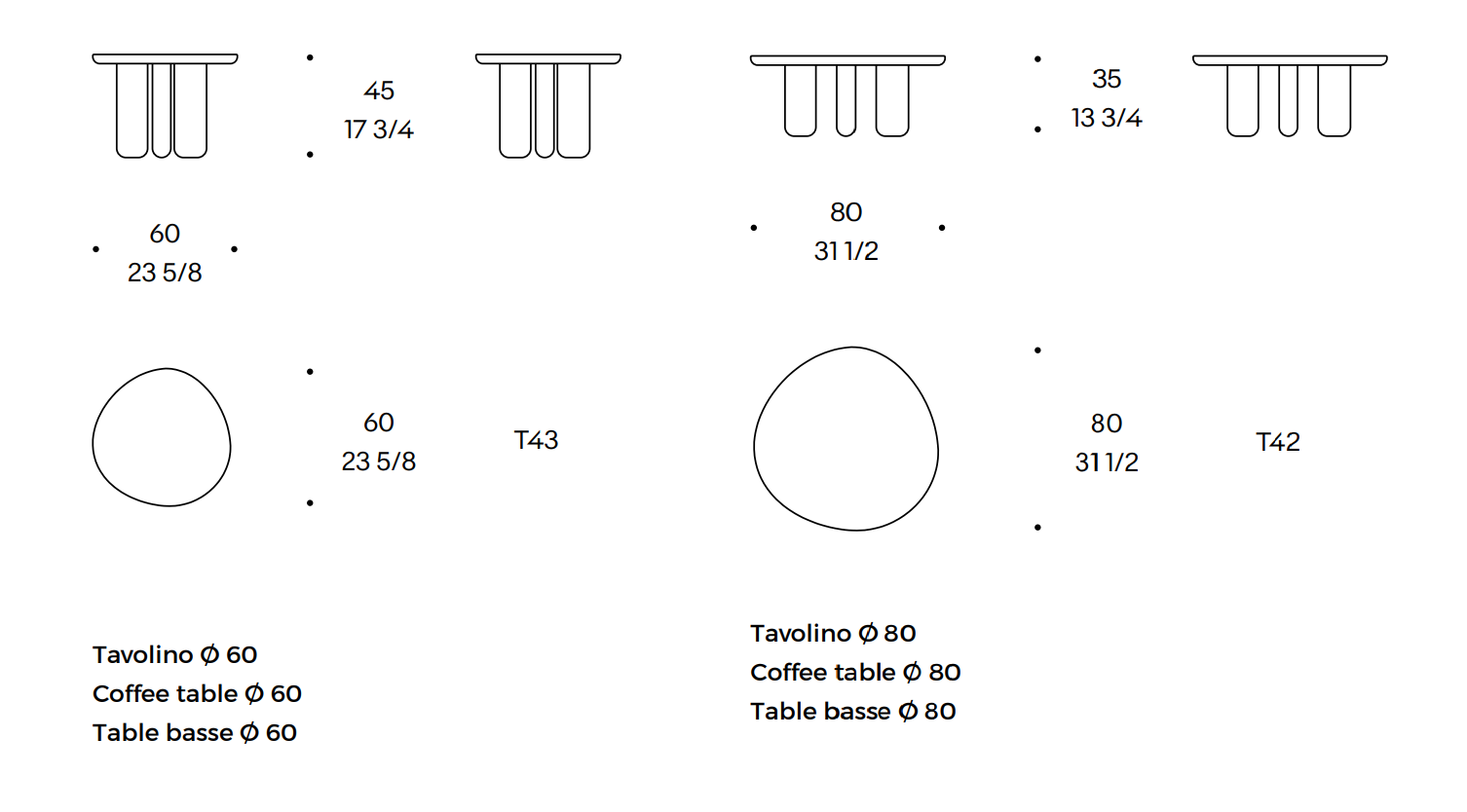 Wysokość: 45 / 35 cm