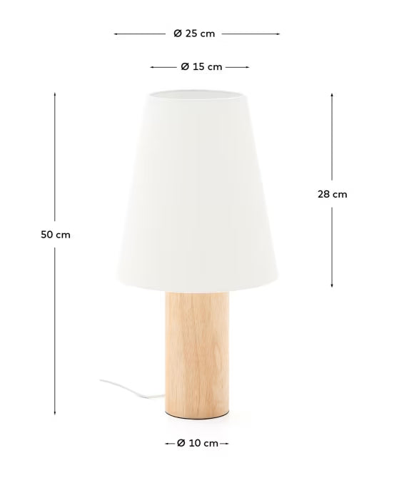 Lampa stołowa MARGA drewno kauczukowe z białym kloszem