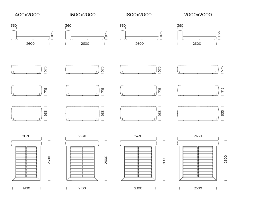 Wezgłowie dostępne jest w trzech wysokościach: 57,5 cm / 71,5 cm / 93,5 cm. Przy zamówieniu należy podać wybraną wysokość, co pozwoli na realizację w odpowiednim wariancie.