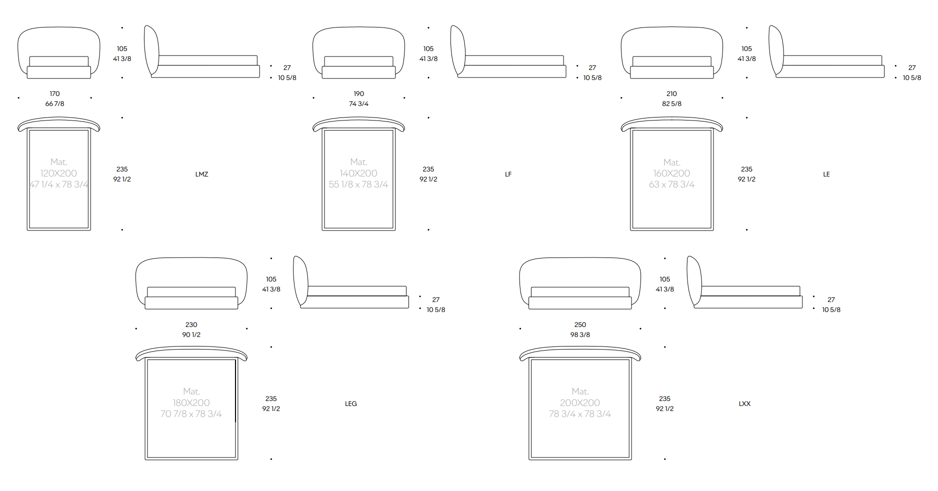 Powierzchnia spania: 120x200 / 140x200 / 160x200 / 180x200 / 200x200 cm