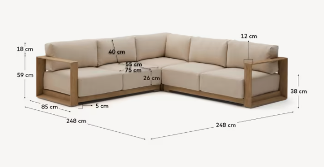 Drewno akacjowe jest wyjątkowo odporne na wilgoć i mikroorganizmy, co sprawia, że narożnik doskonale sprawdza się w warunkach zewnętrznych. Jego trwałość zwiększa certyfikat FSC™ 100%, gwarantujący odpowiedzialne zarządzanie zasobami leśnymi. rozwiązanie dla osób ceniących funkcjonalność, styl i trwałość. Jego przestronny design sprawia, że jest idealnym wyborem do tarasów, ogrodów i przestrzeni wypoczynkowych, wprowadzając ciepły i naturalny klimat do każdej aranżacji.
