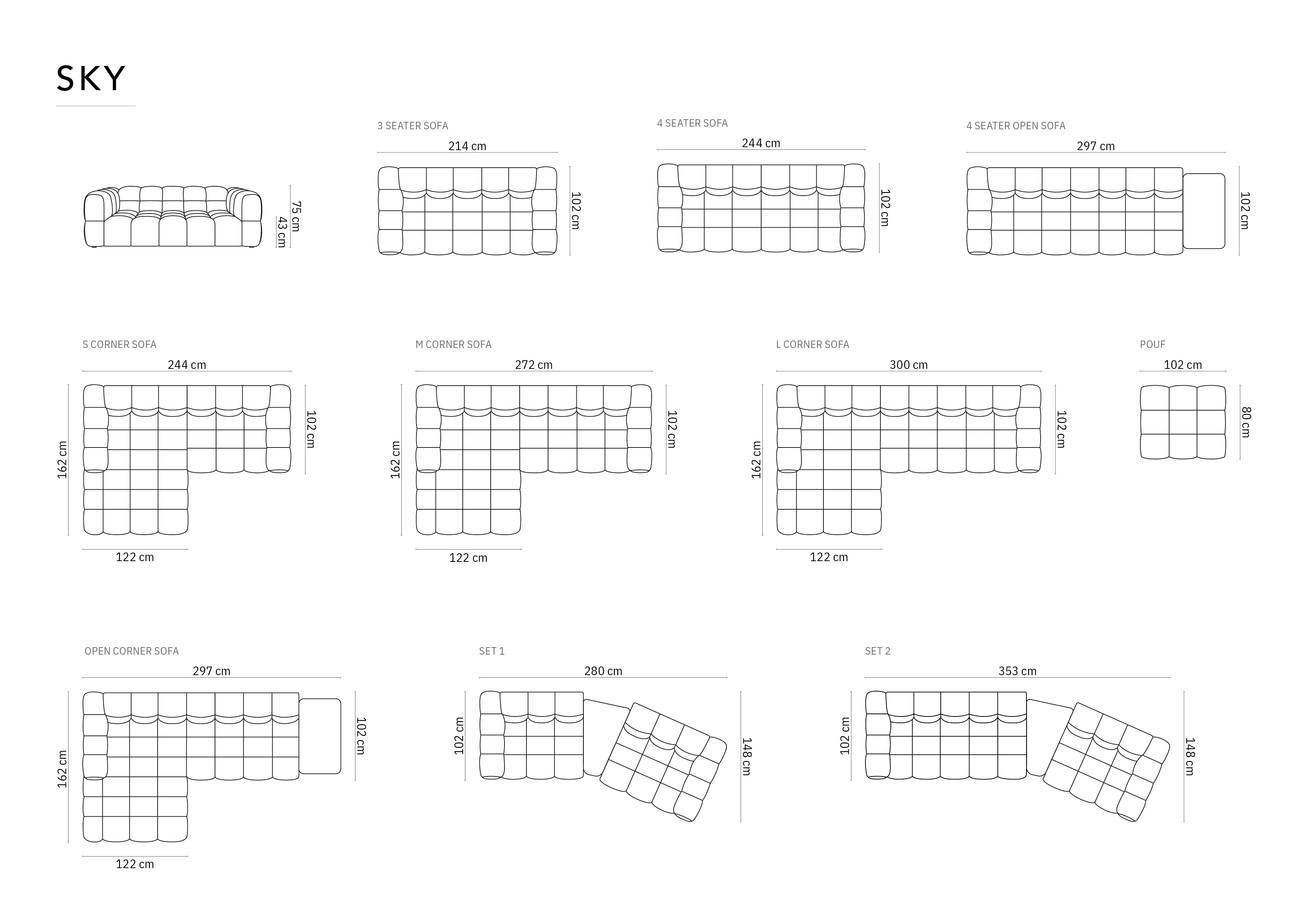 Dostępność w wielu konfiguracjach pozwala dostosować ją do każdego wnętrza, bez względu na jego rozmiar czy styl. Co więcej, użyta tkanina jest wysoce odporny na ścieranie i zarysowania, co czyni narożnik Sky dobrym wyborem dla miłośników zwierząt. Ważną cechą materiału jest duża odporność na plamy i wolne wchłanianie płynów, co znacznie ułatwia czyszczenie.