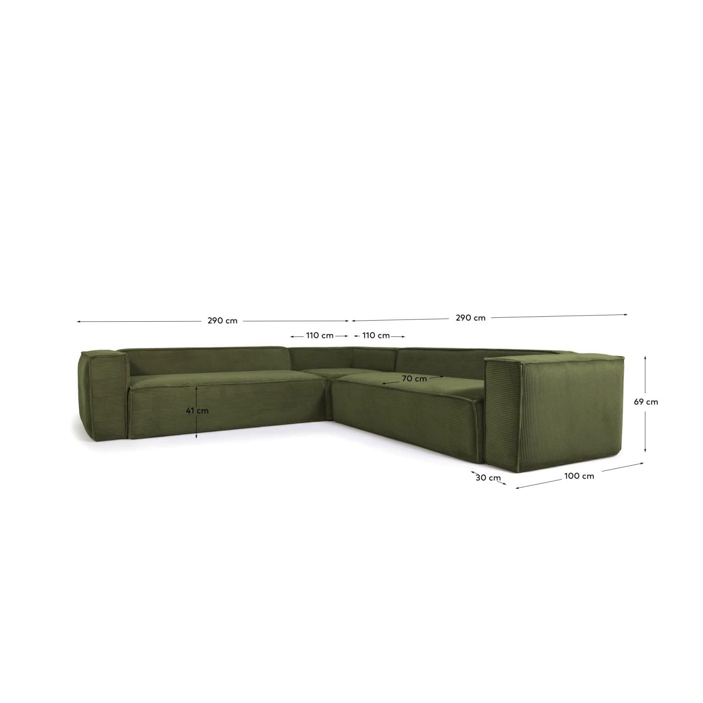 Narożnik symetryczny 4-osobowy BLOK zielony sztruks