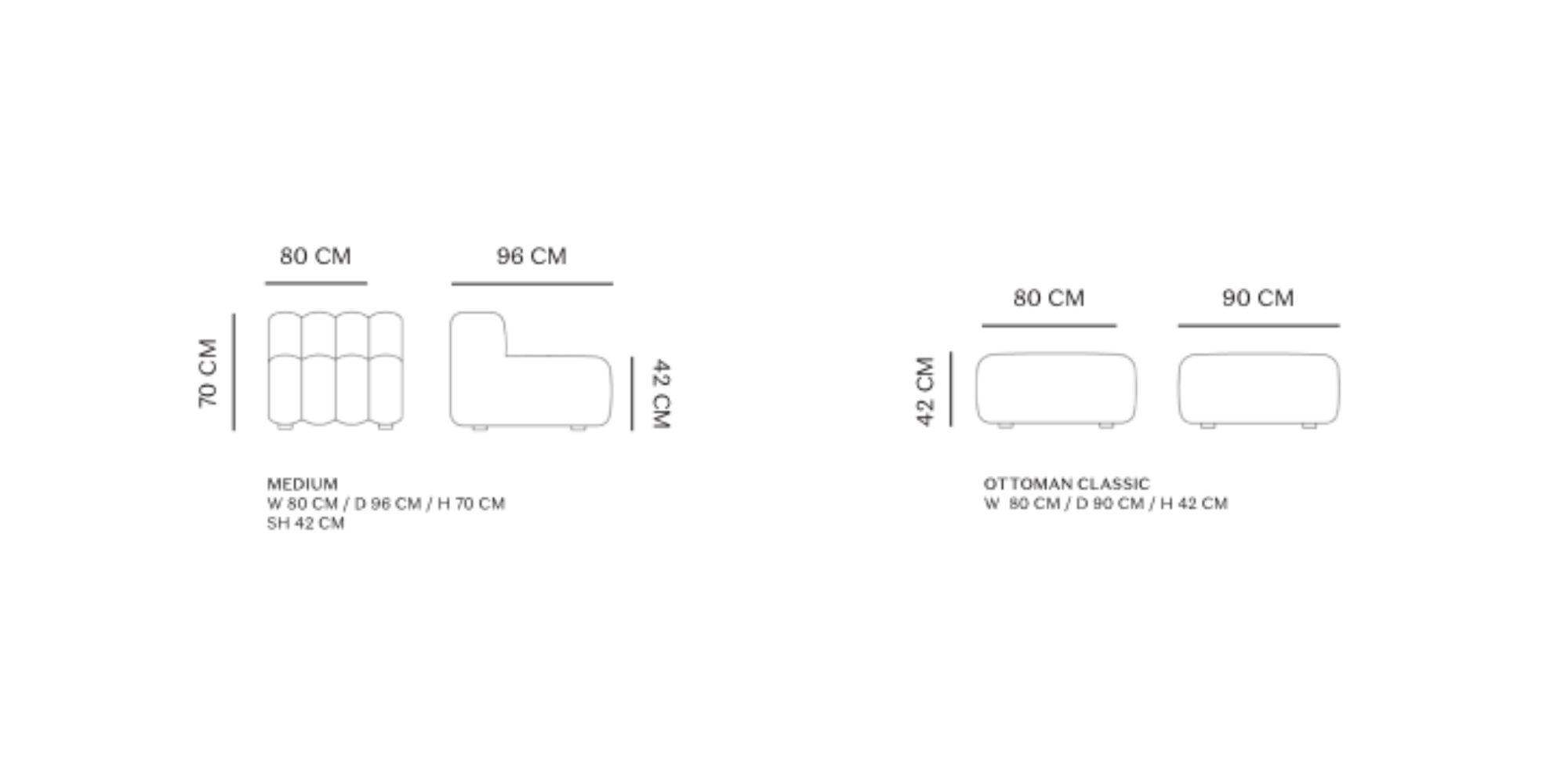 Wymiary otomany classic:
