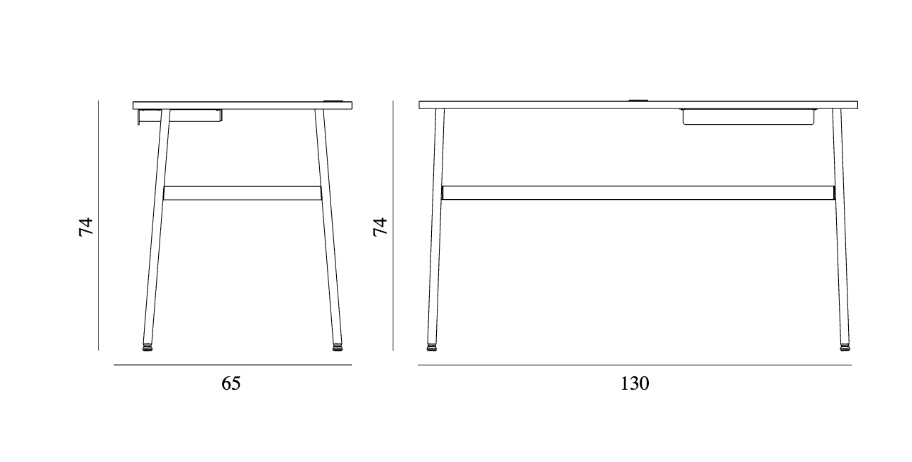 Materiał: Laminowany blat, nogi z malowanej proszkowo stali, szuflada stalowa