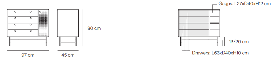Punto świetnie się sprawdzi również jako szafka do salonu bądź przedpokoju. Uniwersalność oraz wielozadaniowość to jedna z wielu cech, za którą ją pokochasz. Zastosowanie białego metalu sprawiło, że szafka łączy loftowy charakter z przytulnością i elegancją.