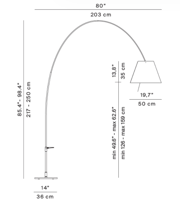 Lampa podłogowa Grande Costanza to powiększona wersja klasycznej lampy Costanza, zaprojektowana przez Paolo Rizzatto dla Luceplan. Łącząc tradycję z nowoczesnym podejściem do oświetlenia, zachowuje lekkość i elegancję oryginalnego projektu, jednocześnie dostosowując się do większych przestrzeni. Wysokość abażura można regulować w zakresie od 175 do 235 cm dzięki teleskopowemu ramieniu, co pozwala na dopasowanie lampy do różnych aranżacji wnętrz.