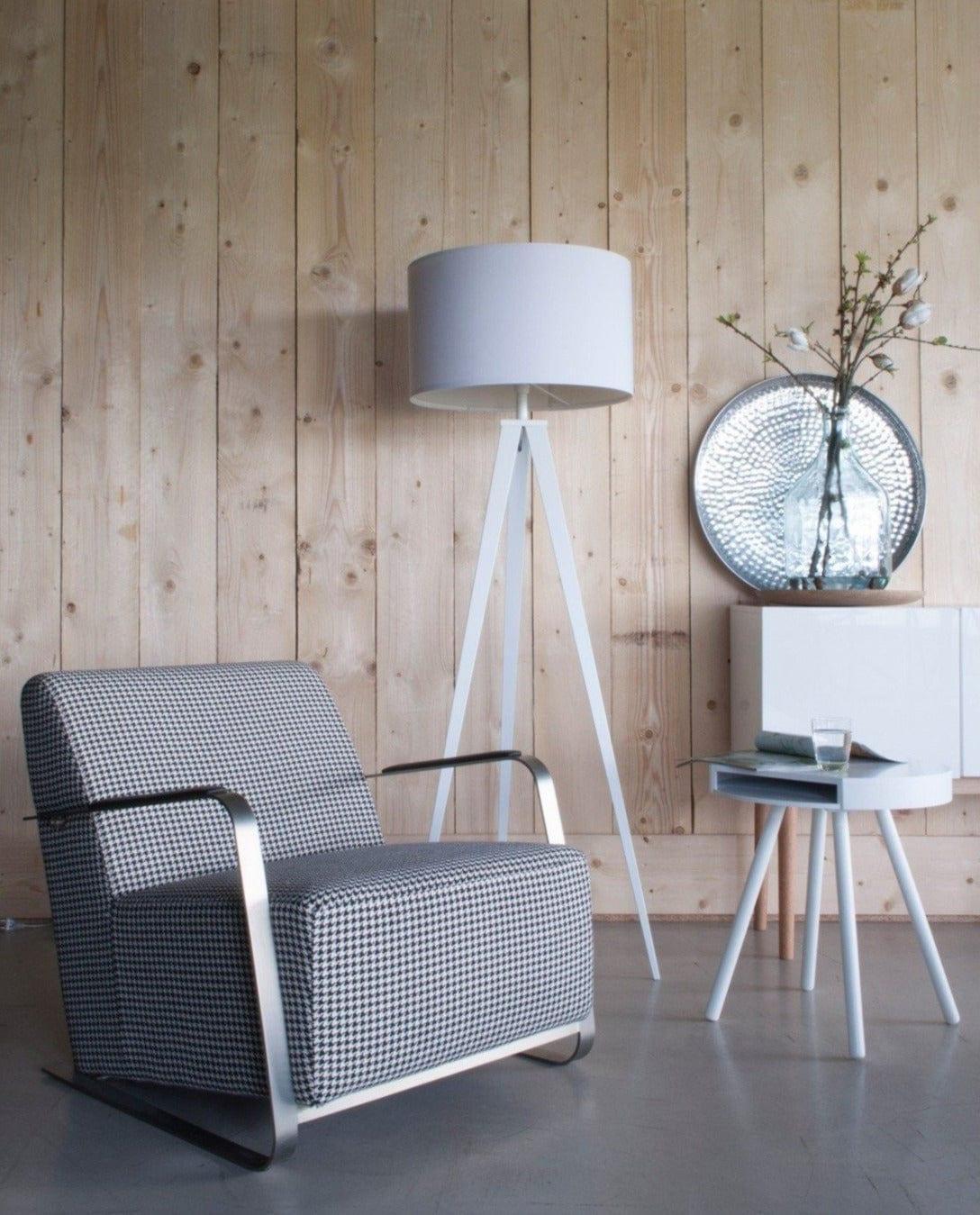 Eleganckie, długie i metalowe nogi to znak rozpoznawczy lampy podłogowej Tripod. Surowość wyglądu została przełamana białym kloszem wykonanym z poliestru, który zawsze można zdjąć dzięki wszytym rzepom.