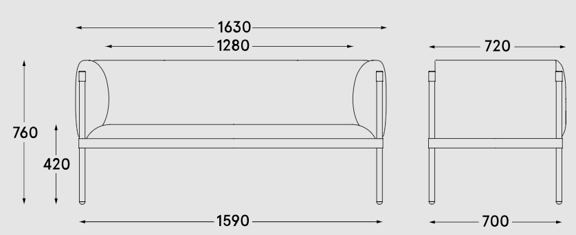 Solidna konstrukcja z płyt wiórowych gwarantuje stabilność oparcia i podłokietników, które dodatkowo tworzą półprywatną strefę. Wysokie nóżki ułatwiają siadanie oraz wstawanie, a stopki z tworzywa sztucznego chronią podłogę przed zarysowaniami. Dzięki eleganckiemu wyglądowi tylnej części sofy, można ją śmiało ustawić w centrum pomieszczenia.