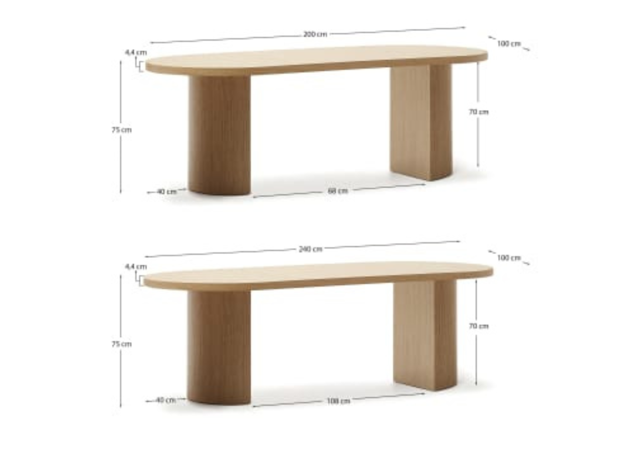 Stół Nealy to wyjątkowy mebel, który harmonijnie łączy prostotę z wszechstronnością. Jego designerski kształt, składający się z połączenia zakrzywionych i prostych linii, podkreśla naturalne piękno drewna dzięki widocznym słojom forniru dębowego. Charakterystycznym elementem stołu jest możliwość regulacji ustawienia półokrągłych nóg, co pozwala dopasować jego wygląd do indywidualnych preferencji użytkownika.