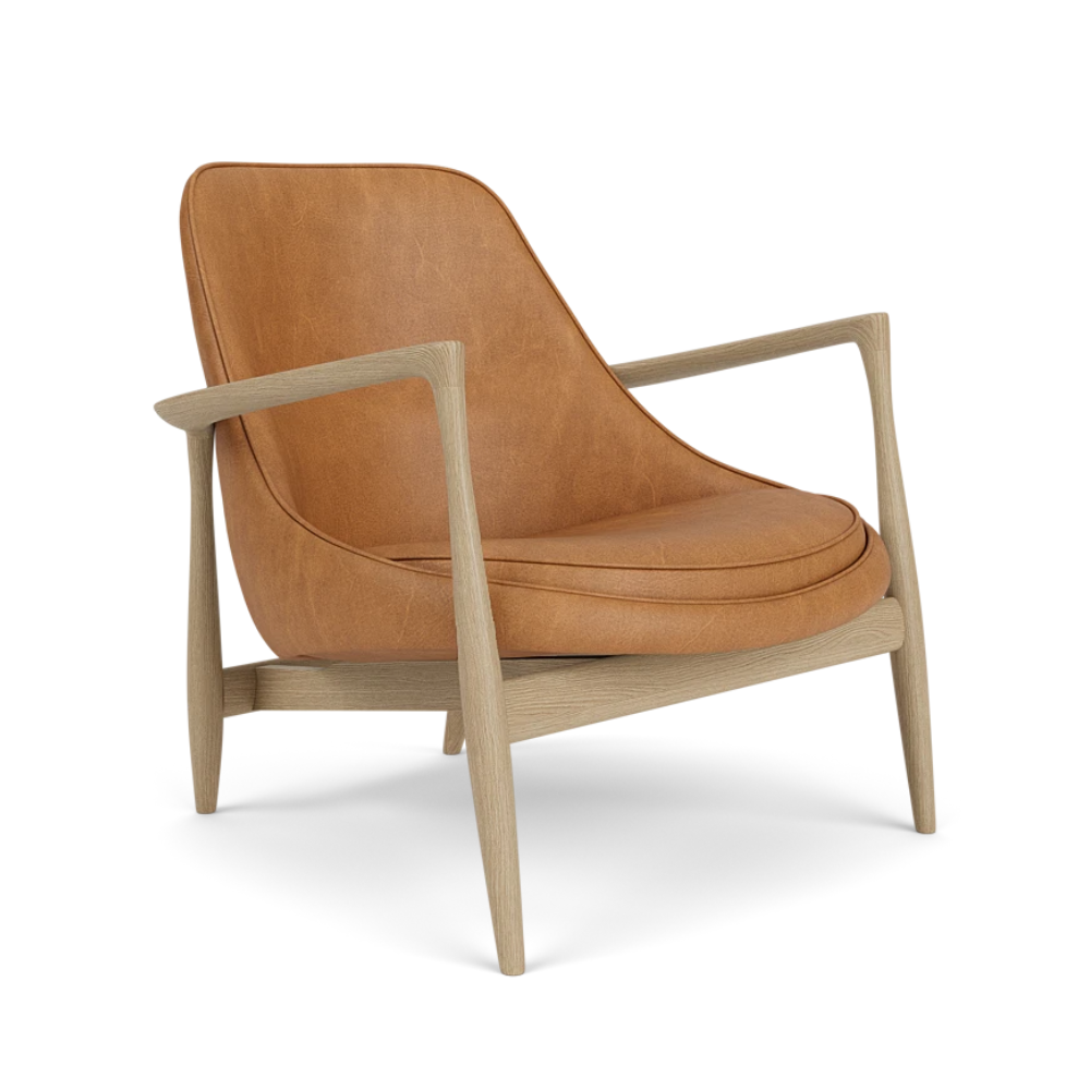 Fotel ELIZABETH koniakowa skóra z dębową podstawą