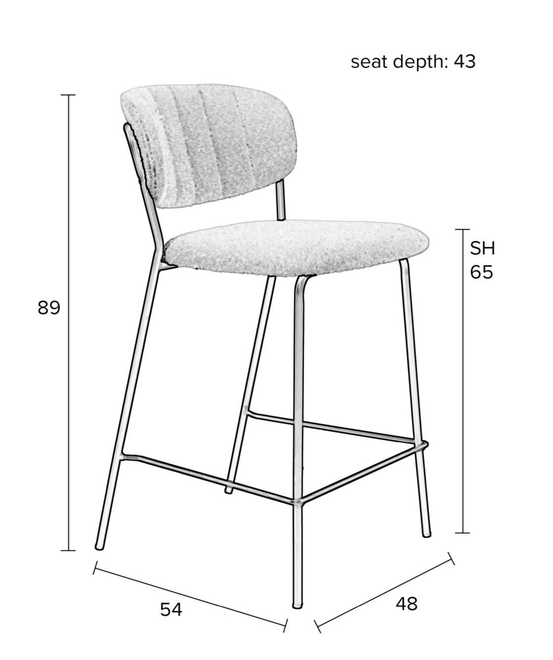 Krzesło barowe Jolien wyróżnia się elegancką kremową tapicerką boucle, która nadaje mu wyjątkowego charakteru. Siedzisko i oparcie wykonane z sklejki i pianki PU są obite stylową tkaniną. Oparcie krzesła, o giętym kształcie i ozdobnych pionowych przeszyciach, przyciąga wzrok. Metalowa konstrukcja, malowana proszkowo na czarno, kontrastuje z jasną tapicerką, tworząc efektowną kompozycję. Krzesło Jolien świetnie wpasowuje się w nowoczesne oraz klasyczne aranżacje, doskonale sprawdzając się w jadalni, pokoju dziennym czy innych wnętrzach. Jest zarówno funkcjonalnym, jak i stylowym elementem dekoracyjnym.