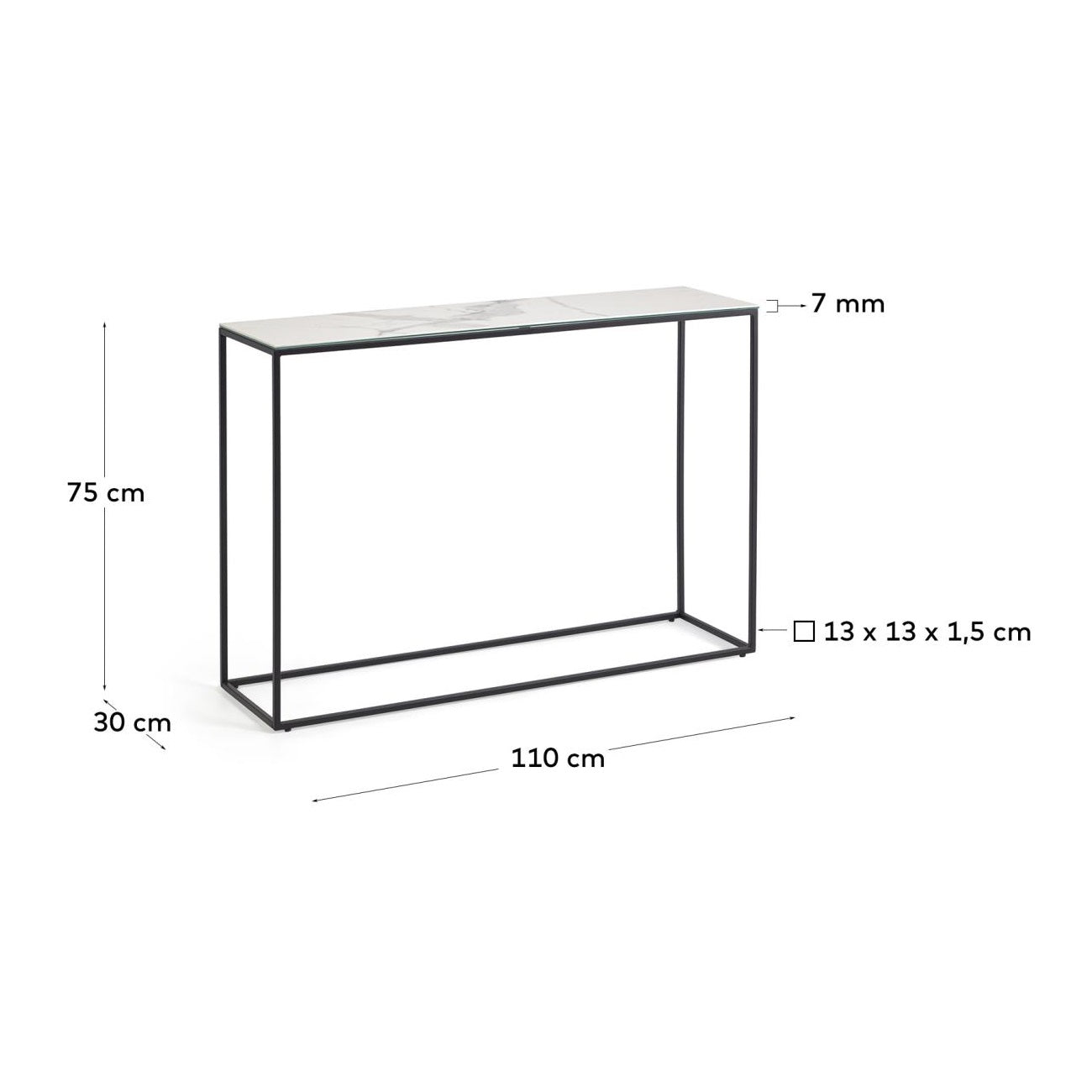 Ceramiczny blat białej konsoli Rewena to symbol wyrafinowanego smaku i estetyki. Wybór tego ekskluzywnego materiału dodaje pomieszczeniu niepowtarzalnego charakteru, tworząc zarazem trwałą i łatwą w utrzymaniu powierzchnię. Solidna stal konstrukcyjna stanowi nie tylko podstawę, ale również subtelny kontrast, tworząc równowagę między nowoczesnością a solidnością.