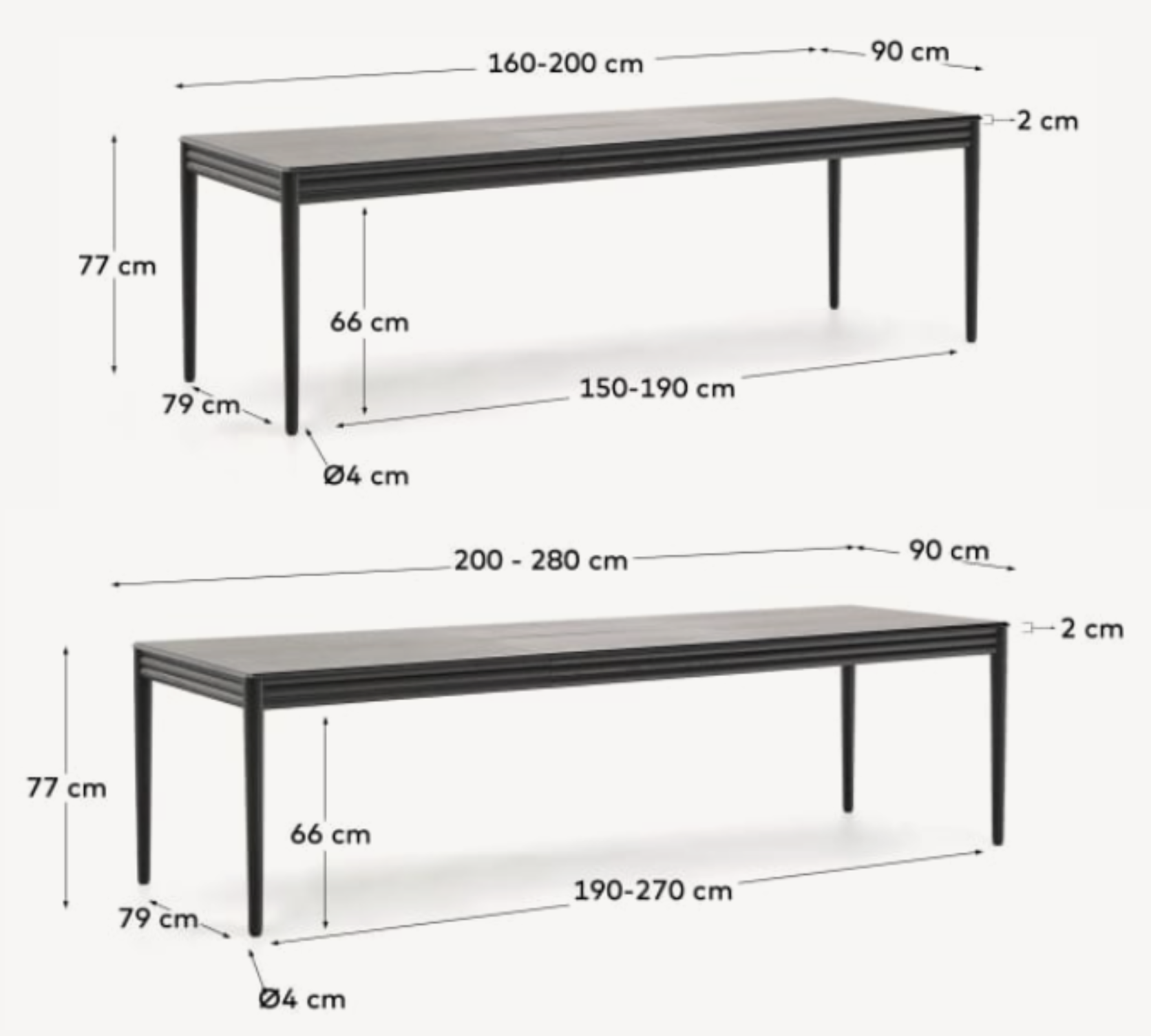 Szerokość po całkowitym rozłożeniu: 200 / 280 cm