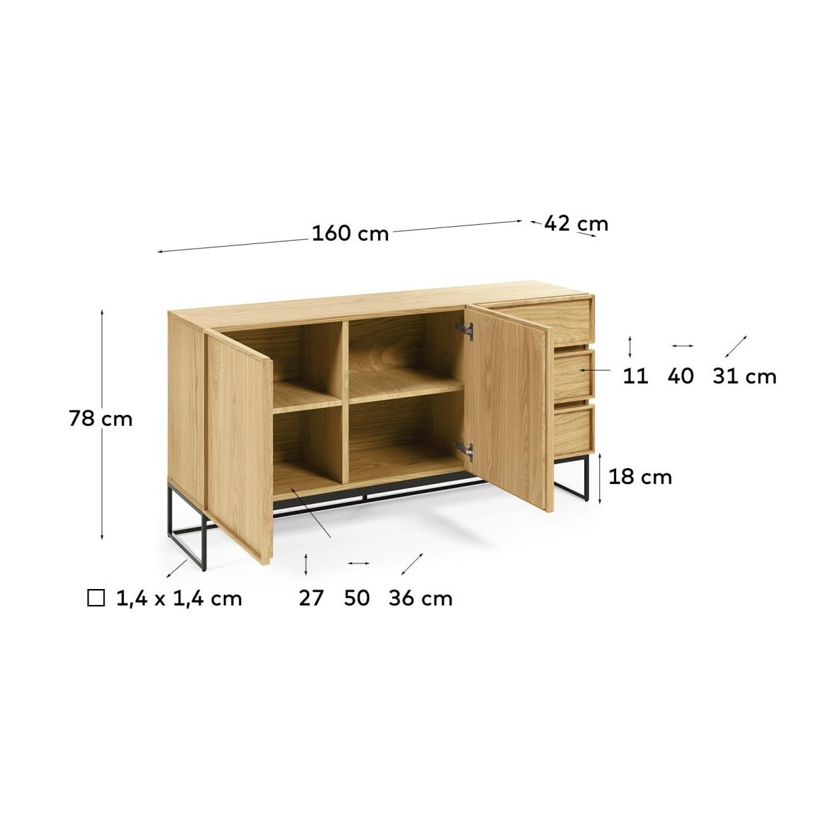 Materiał: 41% MDF E0 (płyta pilśniowa średniej gęstości o niskiej emisji formaldehydu klasy E0), 30% Stal, 29% Fornir dębowy (Quercus alba)
