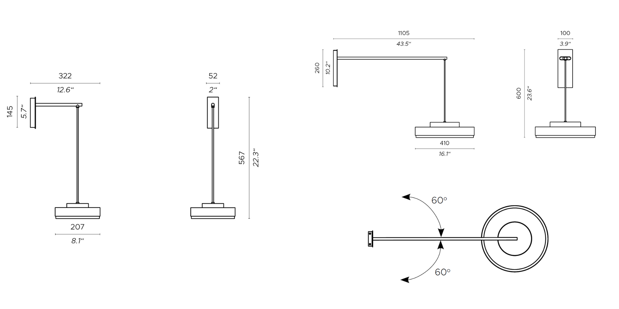 Lampa ścienna Discus to prawdziwie olśniewający przykład nowoczesnego designu, który zachwyca swoją elegancją. Dwa metalowe dyski, otaczają źródło światła w zazębiającej się grze. Biały opalowy dyfuzor pośrodku jest otoczony lekko polerowaną mosiężną opaską, która nadaje projektowi odrobinę luksusu. Specjalny kształt lampy w rozmiarze L, posiada ramię obracające się o 120°, dzięki temu produkt idealnie nadaje się do każdej lokalizacji i zastosowania, zarówno w budynkach mieszkalnych, jak i ekskluzywnych obiektach hotelarskich.