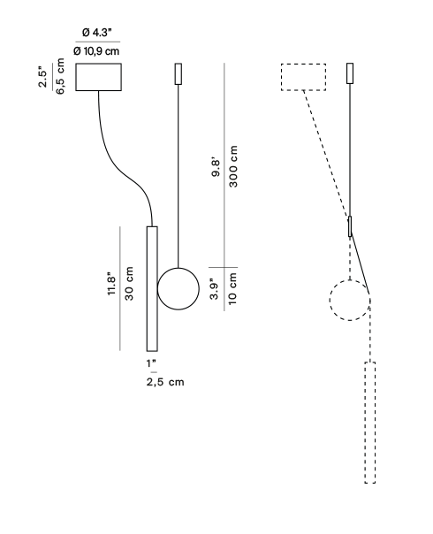 Lampa wisząca Doi marki Luceplan to nowoczesna i dekoracyjna oprawa oświetleniowa, która łączy minimalistyczny design z iluzją ruchu i równowagi. Składa się z dwóch podstawowych elementów: dysku mocowanego do sufitu oraz aluminiowego cylindra pełniącego funkcję reflektora, zawieszonego na cienkim przewodzie. Dodatkowym elementem może być przeciwwaga, pozwalająca na dostosowanie kąta padania światła.