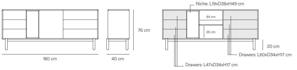 Komoda Corvo, dzięki pojemny półkom i szufladom, uporządkuje przestrzeń w salonie czy jadalni. Interesujący projekt autorstwa Erica Cambres’a i Carlosa Garcii zawiera również jedną, pionową półkę bez frontu, która pozwala na wyeksponowanie przedmiotów stanowiących dodatkową ozdobę.