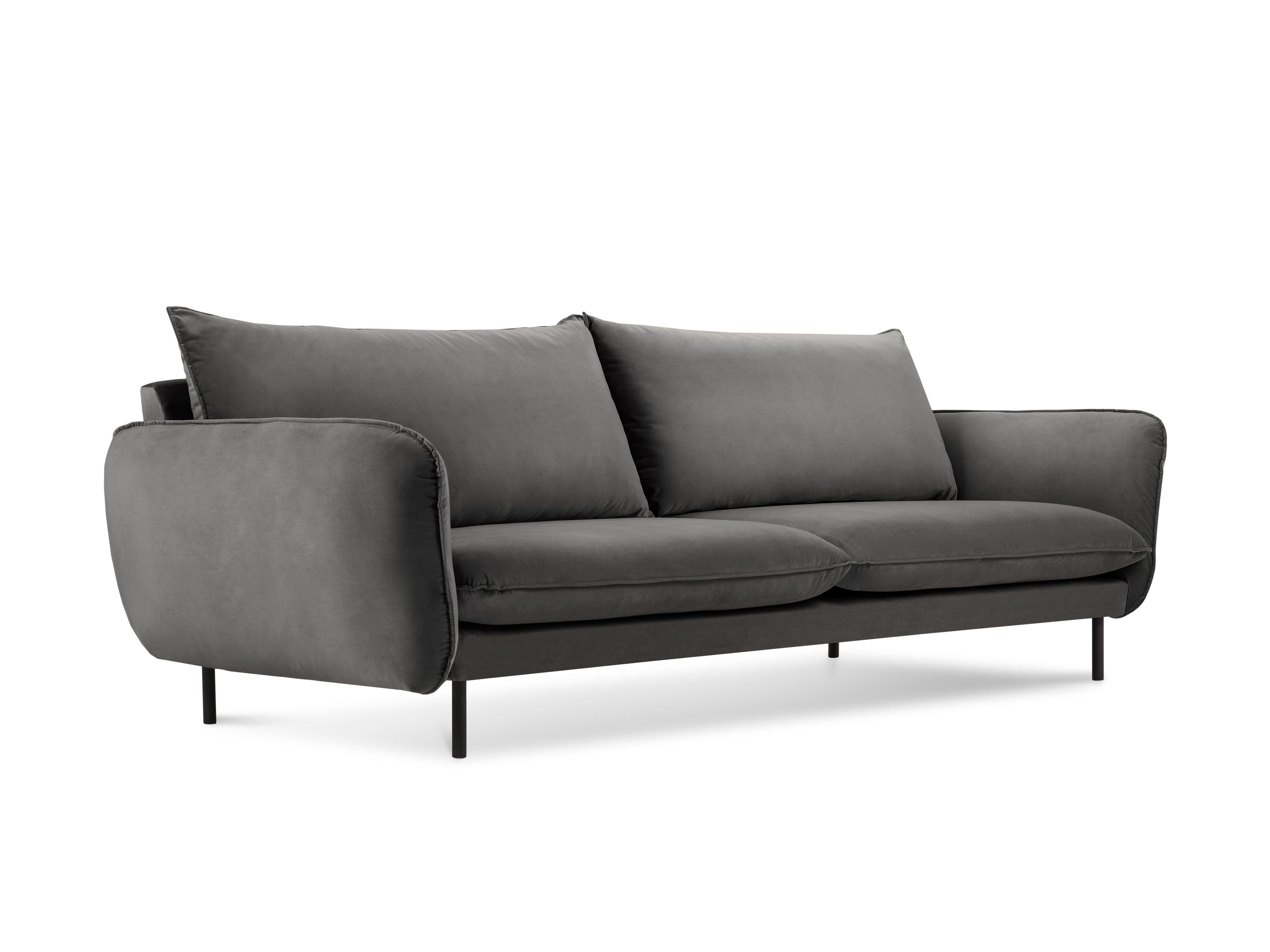 Sofa aksamitna 4-osobowa VIENNA ciemnoszary z czarną podstawą