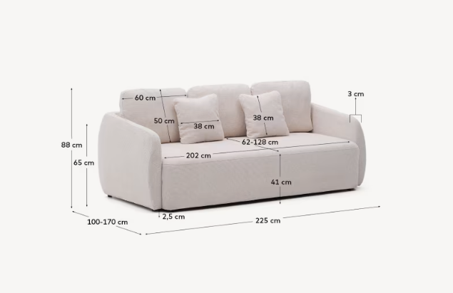 Sofa Laira wyróżnia się wysokiej jakości tapicerką wykonaną z szenilu o luźnym splocie, który zapewnia wyjątkową miękkość w dotyku oraz wysoką odporność na ścieranie. Dzięki systemowi Y-open, sofa może być łatwo i szybko przekształcona w wygodne łóżko o wymiarach 150 x 190 cm w najdłuższym miejscu, dzięki zsynchronizowanemu mechanizmowi otwierania. Po rozłożeniu może również pełnić funkcję ciągłego szezlonga, zapewniając dodatkowy komfort.