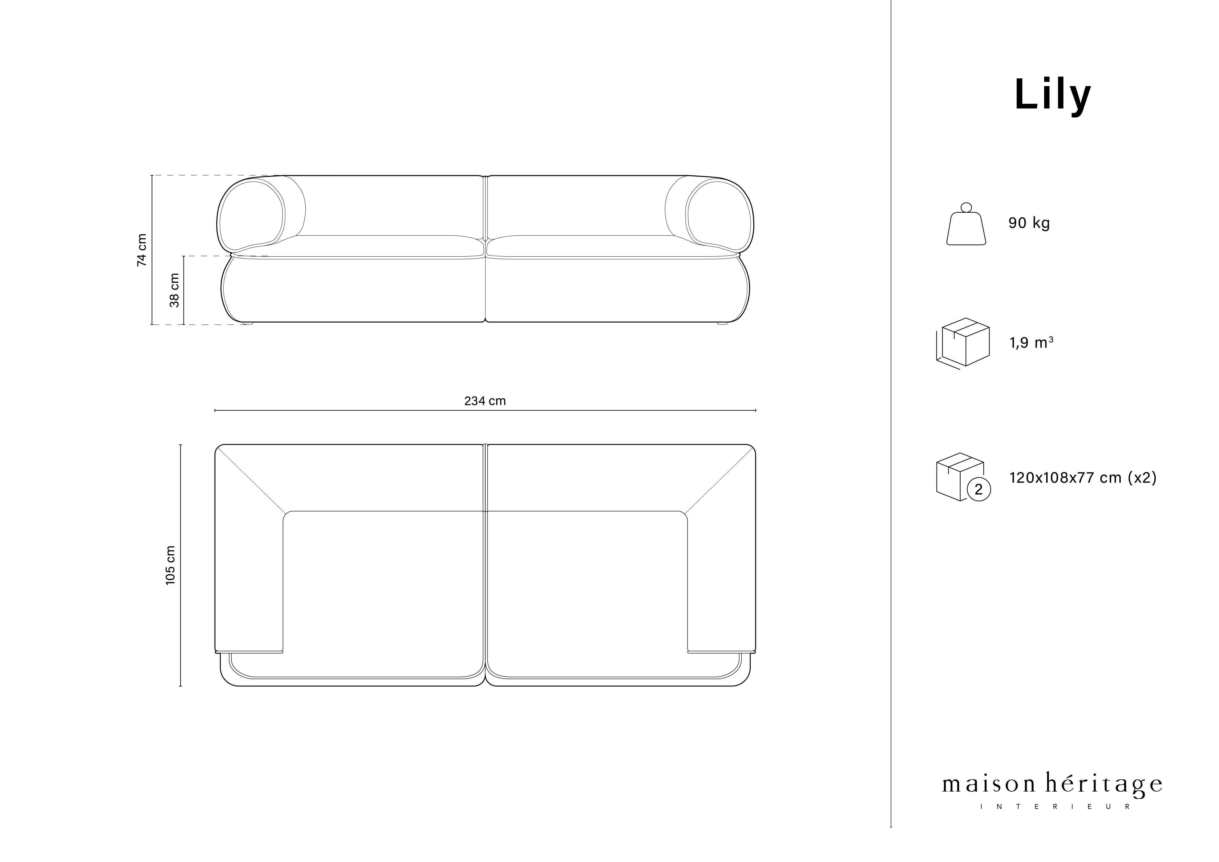 Głębokie siedziska są sprężyste i wyjątkowo wygodne. Delikatne pikowania i przeszycia podkreślają klasyczny charakter projektu. Dzięki niskiej i rozłożystej sylwetce sofa Lily wprowadzi do wnętrza odrobinę przytulności i ciepła. W kolekcji dostępne są różne kombinacje sof i narożników, a także szezlong i duża pufa, dzięki którym można stworzyć niepowtarzalny wystrój.