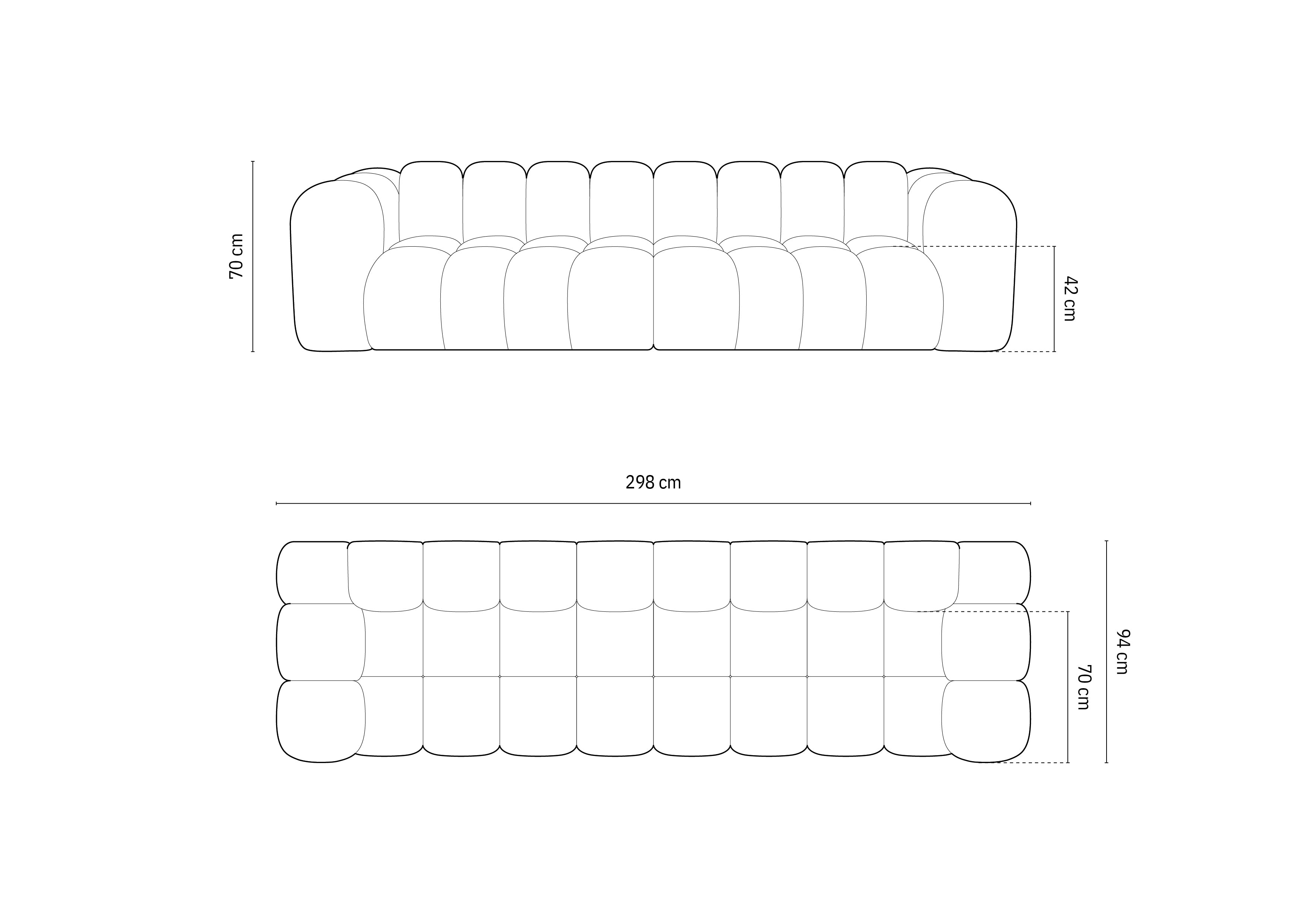 Elegancka sofa Halley dla czterech osób zachwyca unikalnymi detalami i pikowaniem, które nadają wnętrzu niezwykłej elegancji w stylu nowoczesnego klasycyzmu. Wygodne siedzisko o delikatnej fakturze, połączone z designerskim oparciem i szerokimi podłokietnikami, tworzy idealne miejsce do relaksu po intensywnym dniu. Forma Halley jest lekko awangardowa, przyciągając uwagę z każdej strony.