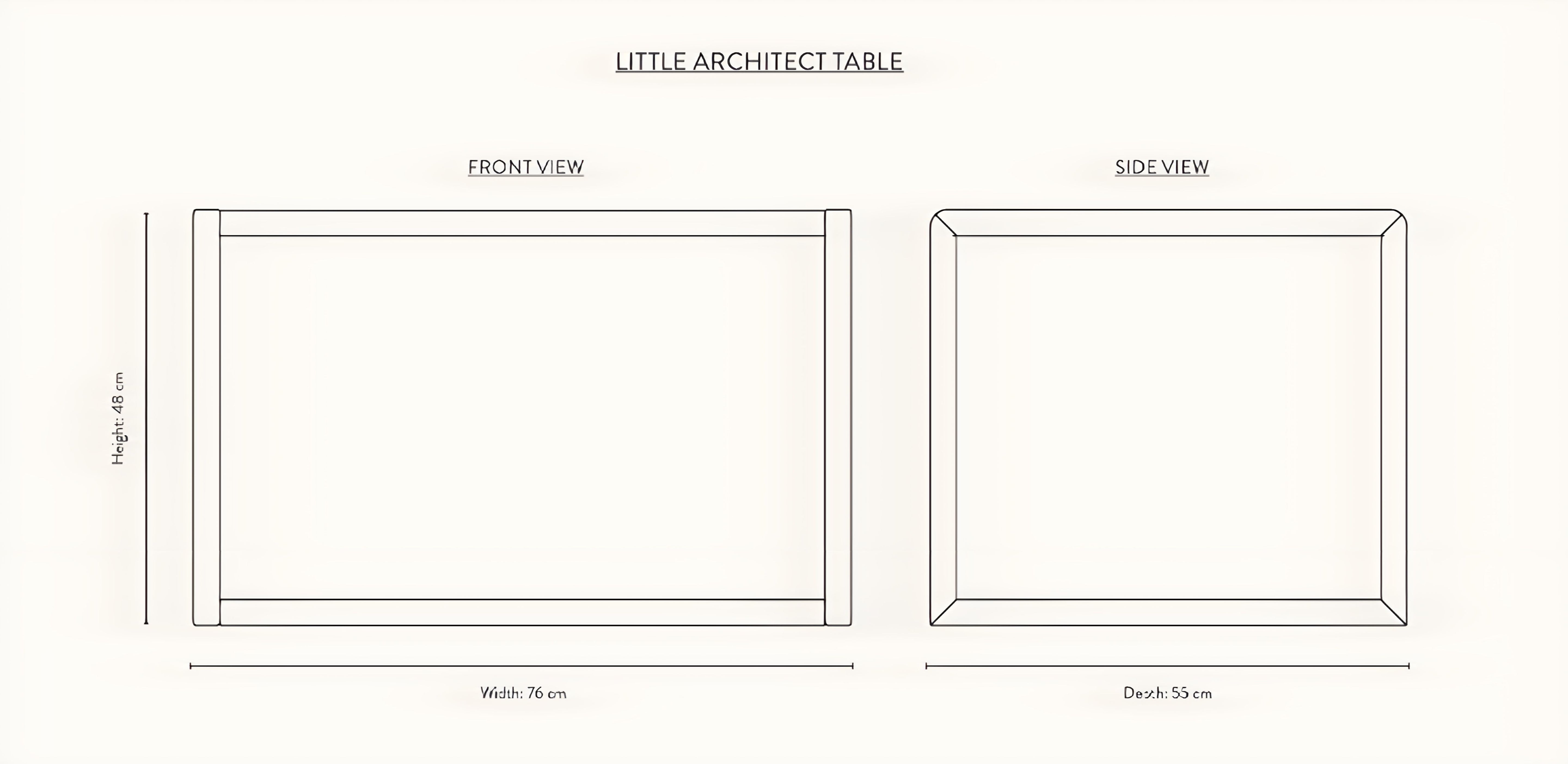 Kolekcja Little Architect to doskonała przestrzeń dla małych geniuszy, którzy pragną kształtować nowe pomysły, organizować małe kolacje czy malować przez długie godziny. Oferująca szereg prostych, nowoczesnych elementów w pięknych kolorach, kolekcja ta jest idealnym rozwiązaniem do stworzenia kreatywnej, pełnej zabawy przestrzeni, która z pewnością rozbudzi wyobraźnię Twojego dziecka. Stolik Little Architect został wykonany z certyfikowanego drewna jesionowego FSC™ i wyposażony w subtelną, wąską szczelinę, przez którą można włożyć rolkę papieru do niekończących się sesji rysunkowych.