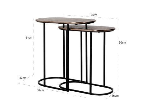 Blaty stolików, wykonane z owalnego aluminium w kolorze szampańskiego złota, to wyjątkowy akcent, który nadaje meblom elegancji i luksusowego wyglądu. Kombinacja aluminiowych blatów z solidną metalową ramą i nogami tworzy kontrast, który wprowadza nowoczesność i lekkość do przestrzeni.