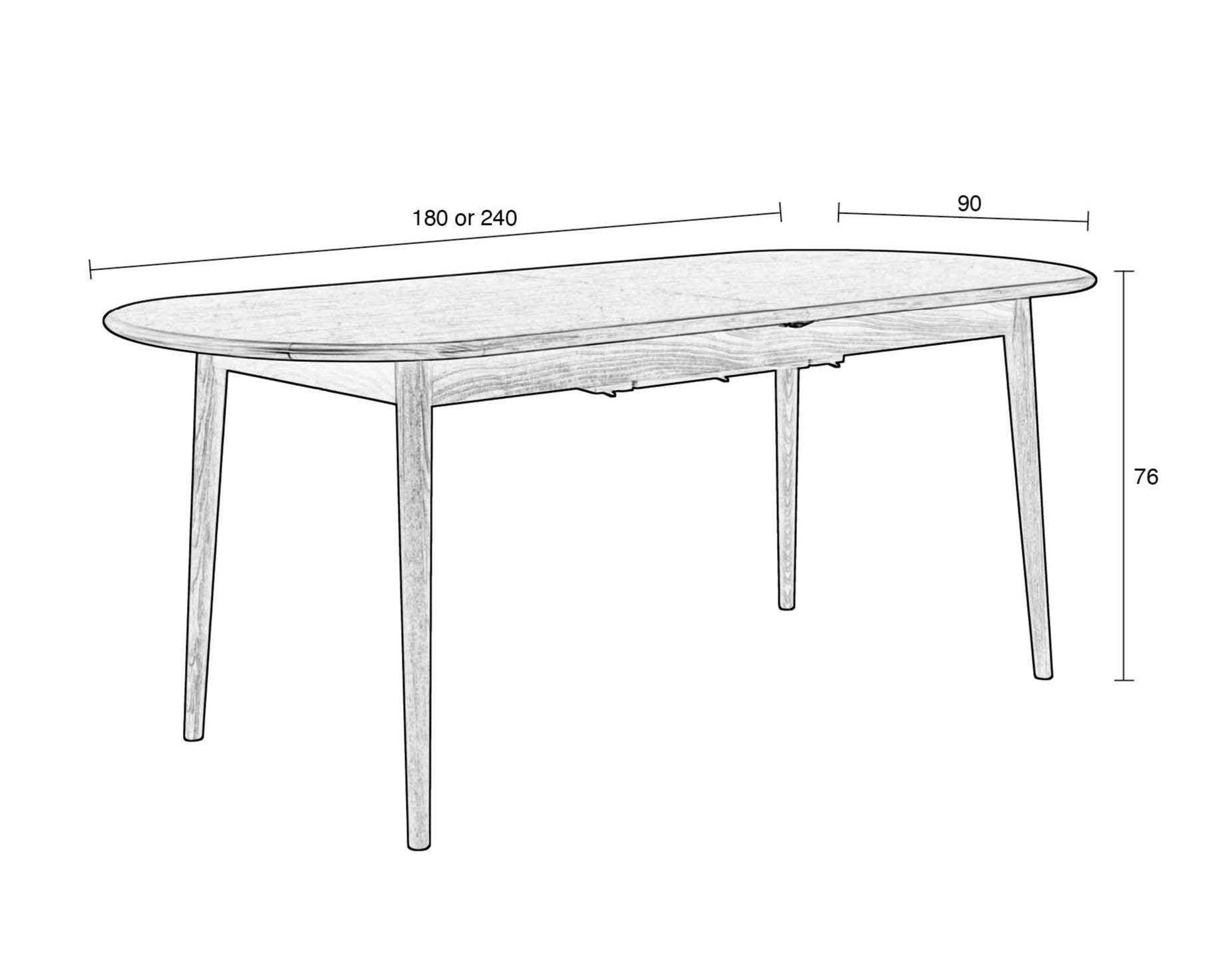 Ten owalny stół rozkłada się ze 185 cm na większy, do 240 cm.