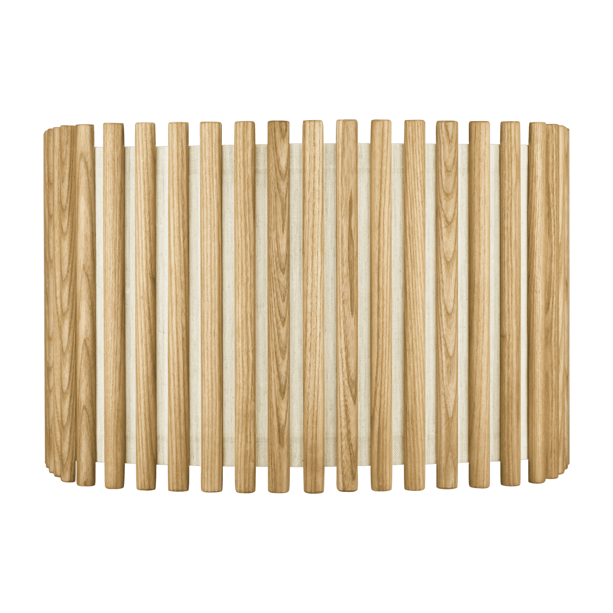 Kolekcja Komorebi składa się z różnorodnych abażurów wykonanych z drewnianych lameli i tekstyliów. Połączenie tych naturalnych materiałów pomaga stworzyć domową atmosferę pełną spokoju i ciepła.