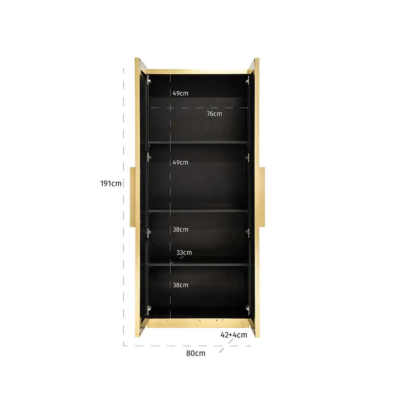 Szafa dwudrzwiowa Ironville w kolorze mosiądzu to harmonia arystokracji w nowoczesnym wydaniu. Najlepiej prezentuje się w przestronnych wnętrzach. Każdy element kolekcji Ironville został starannie wykonany z wysokiej jakości materiałów. Metalowe detale w połączeniu z odpowiednim oświetleniem rozjaśniają każde pomieszczenie. Czarne barwy i złote odcienie to recepta na wnętrze o wyrazistym charakterze.